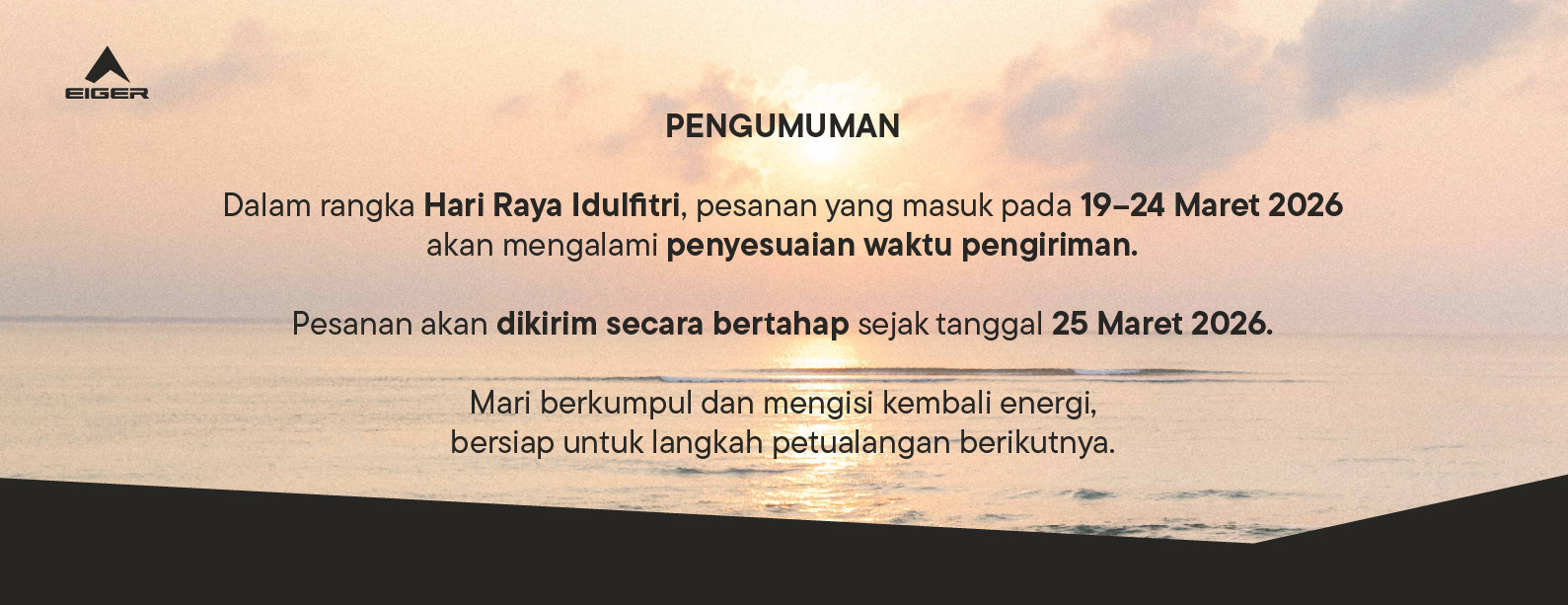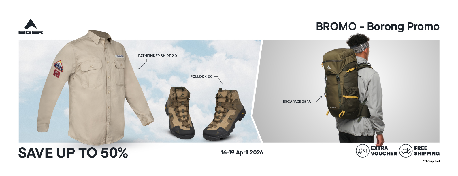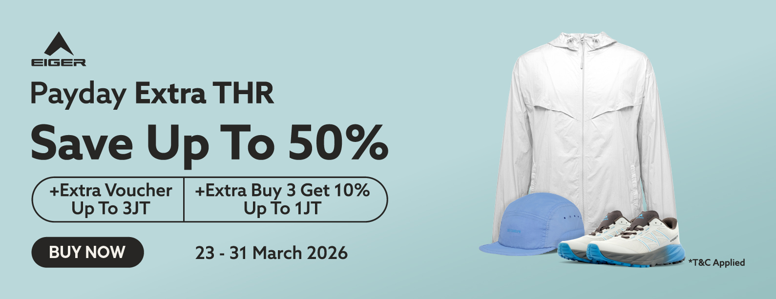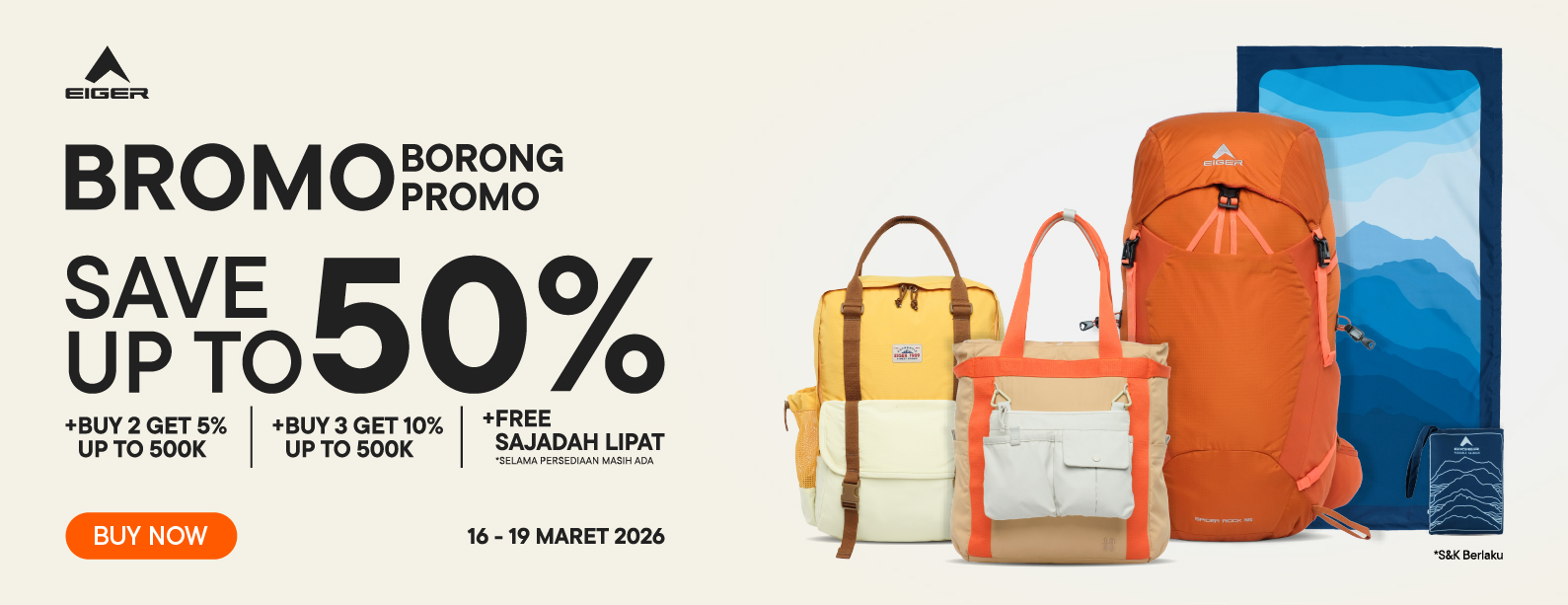 Embark on an outdoor adventure with EIGER. Complete with various collections of favorite and original EIGER products. With various payment methods ranging from paylater, bank transfer, to COD. Also get the best prices and attractive promos for a variety of selected items. The process is safe, comfortable, definitely fast response only at eigeradventure.com. EIGER not only contributes to outdoor activities, but also pays great attention to environmental sustainability. Various EIGER products ranging from apparel to various gear to support your outdoor activities here!