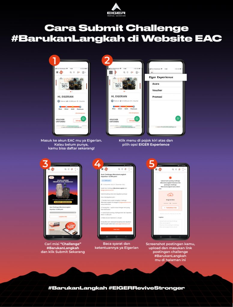 - Gunakan hashtag #BarukanLangkah dan #EIGERReviveStronger
