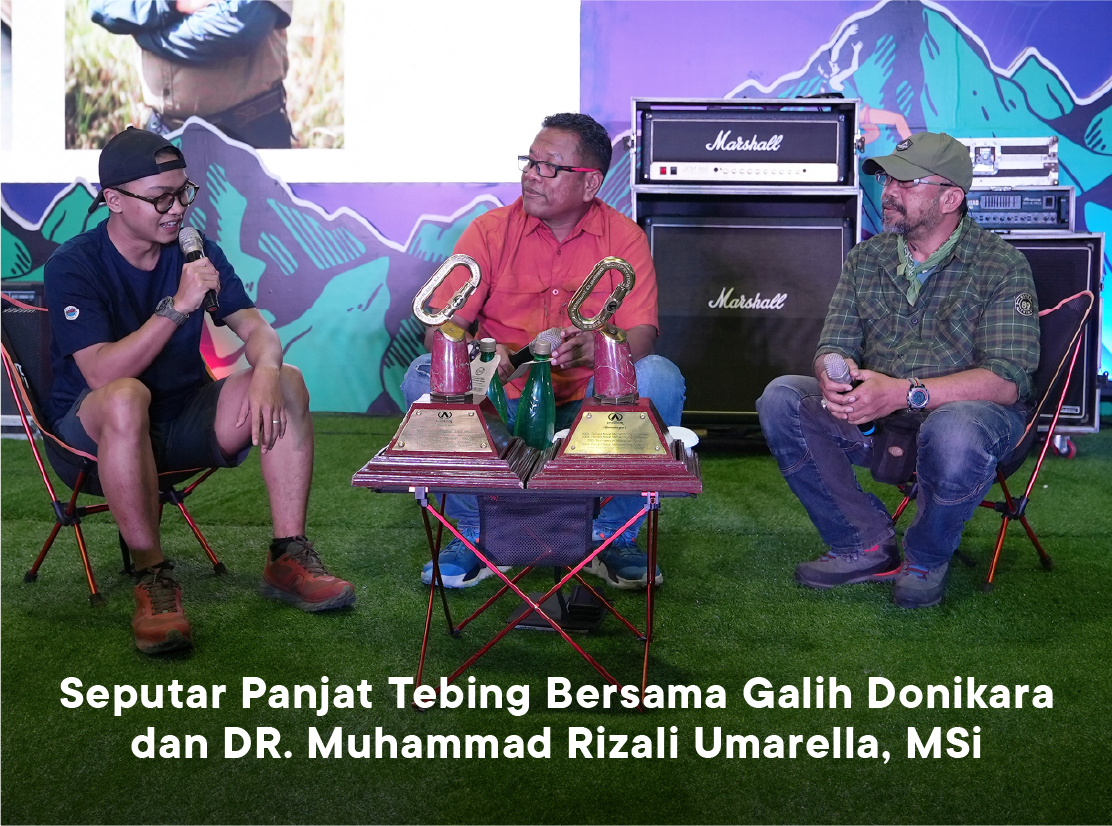 Bicara tentang panjat tebing, menurut Kang Galih kegiatan outdoor ini memiliki filosofi yang menarik. Katanya: semua manusia ketika lahir mereka memanjat tapi datar tapi ke atas.