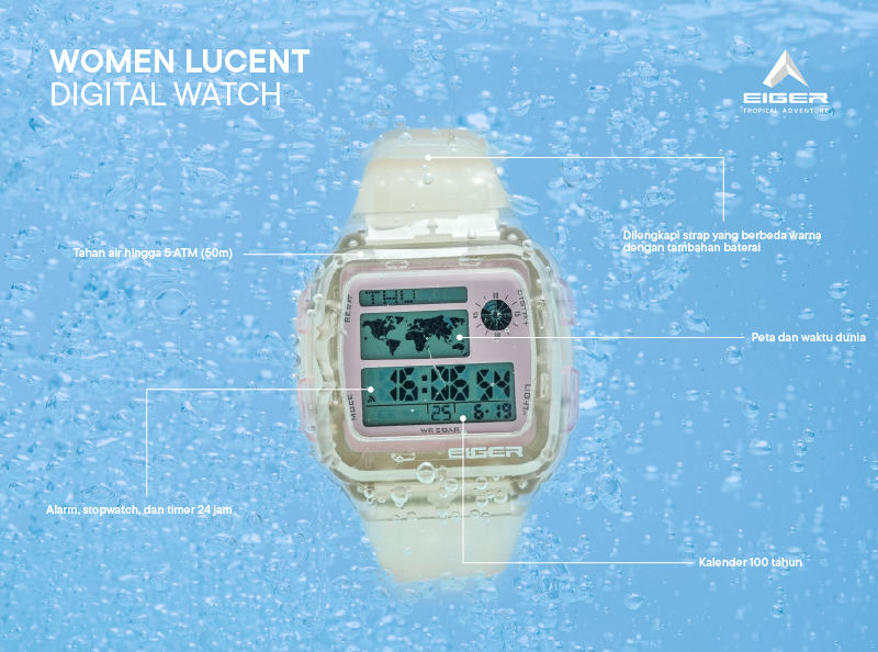 Tertarik punya jam tangan tahan air yang stylish dan fungsional seperti WS Lucent? Yuk, langsung dapatkan sekarang juga! Eigerian bisa membeli WS Lucent Digital Watch lewat website resmi EIGER Adventure atau datang langsung ke EIGER Adventure Store (EAS) terdekat di kotamu.