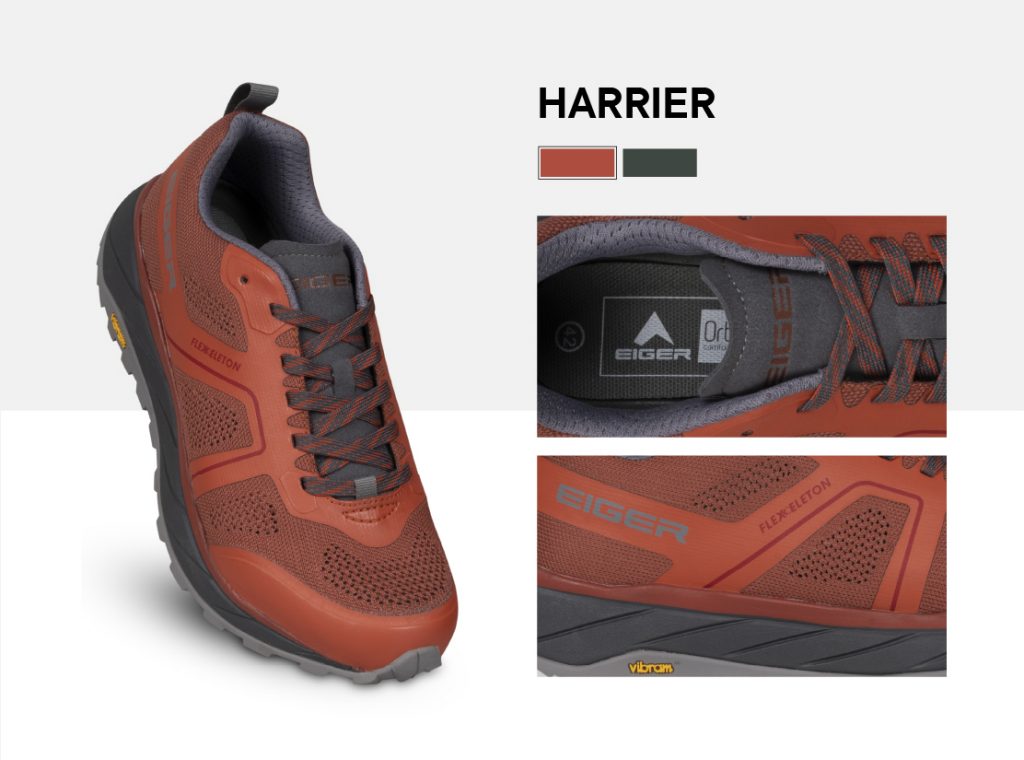 Sepatu Harrier sering digunakan Kang Kwecheng untuk berlatih sebelum memulai pendakian. Menurut Kang Kwecheng, sepatu yang tepat untuk trail running adalah sepatu dengan daya cengkeram yang kuat. Harrier Shoes yang dirancang dengan konstruksi Flexeleton yang lebih fleksibel dan outsole Vibram, sehingga memiliki daya cengkeram dan traksi yang baik agar dapat bergerak secara aktif pada medan bebatuan atau permukaan tidak rata lainnya.
