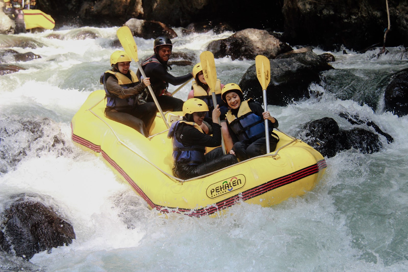 Untuk melakukan tantangan seru mendayung melalui jeram-jeram liar di sungai, arung jeram mengandalkan kerja sama tim, petualangan, kekompakkan, dan keberanian tinggi. Wajib coba!