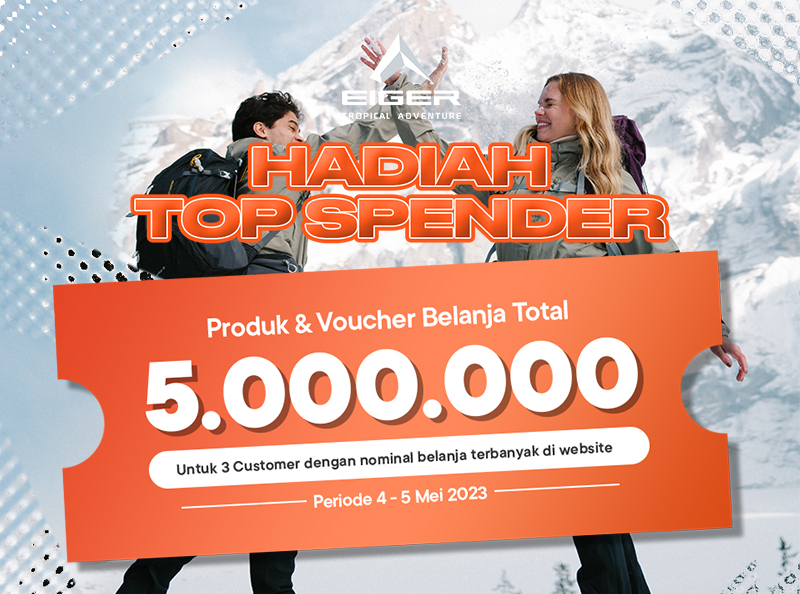 Selain hadir dengan hadir dengan potongan harga yang bisa langsung kamu nikmati, pada Promo 5uper 5ale ini EIGER juga akan memberikan voucher belanja dan produk gratis untuk top spender loh! Penasaran? Yuk ikuti caranya lewat artikel berikut ini!