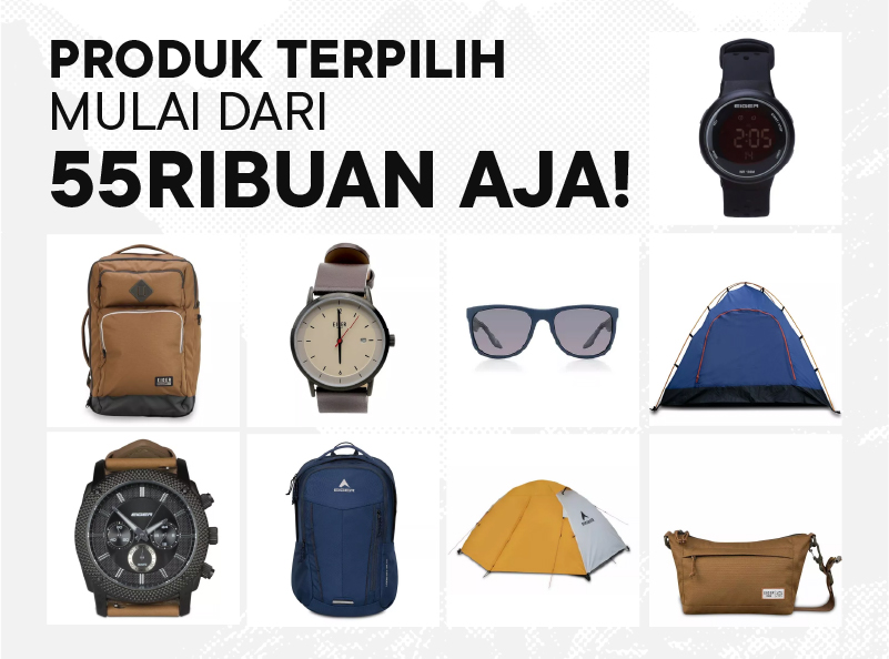 Butuh sepatu baru? juga dengan tas untuk kebutuhan sehari-harimu? Belanja sekarang di promo 5uper 5ale EIGER. Dapatkan crazy price, produk terpilih hanya 55Ribuan aja!