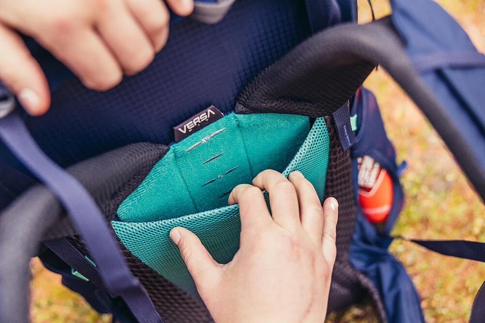 • Panjang torso VersaFit yang dapat disesuaikan dengan backpanel busa 3D berlubang (perforated) yang sejuk