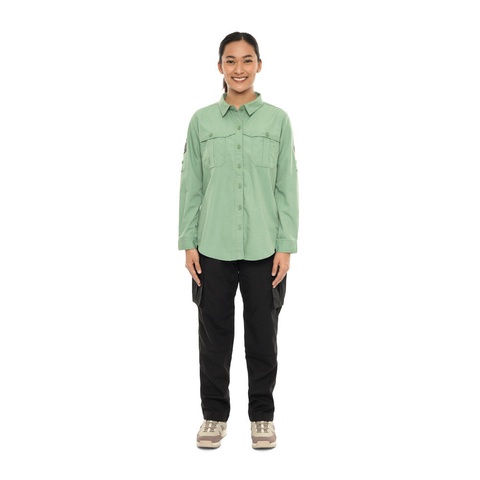 • Lengan panjang yang dapat digulung dengan tab lengan dan kancing