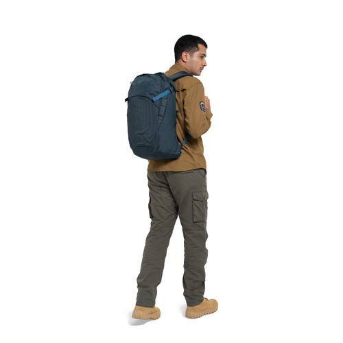 Fitur: Kompartemen utama Ruang penyimpanan di bagian depan dengan gantungan kunci Kantong eksternal yang tahan dari goresan Tali kompresi atas yang dapat diselipkan Saku tersembunyi untuk botol minum di kedua sisi Pengait lampu kecil (lampu tidak termasuk) Tali dada yang dapat disesuaikan dengan peluit Hipbelt yang dapat dilepas Bagian belakang tas yang memiliki sirkulasi udara dan nyaman digunakan, serta harness yang lembut Kantong busa untuk menyimpan laptop 15" dan tablet Kantong bagian dalam untuk menyimpan dokumen