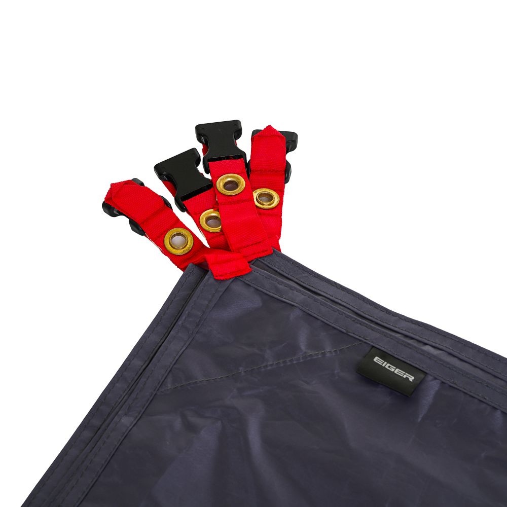 • 4 tali di setiap sudut dengan ring logam untuk pemasangan yang mudah