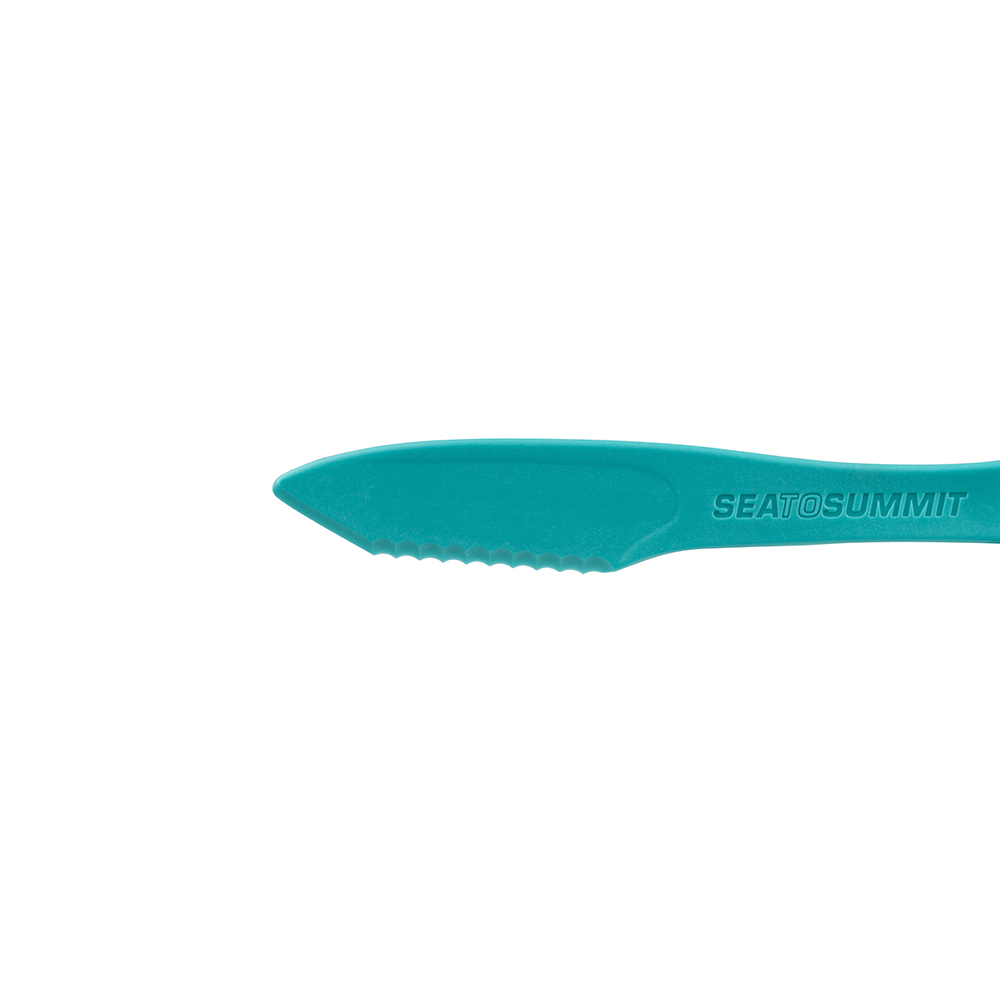 The Delta Cutlery Set is a short knife, fork and spoon utensil set designed to fit inside your Delta Bowl when camping. The supplied carabiner can be used to hang or clip the three utensils together. The knife has a part flat blade for easy spreading and part serrated blade for chopping.