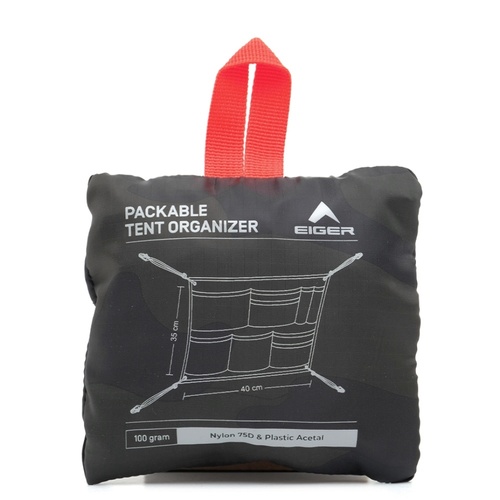 Atur barang-barang berharga Anda saat berada di sekitar perkemahan secara rapi, mudah diakses namun juga tetap aman dengan menggunakan Talon Tent organizer. Terbuat dari material polyester dengan kualitas yang baik, Talon Tent organizer ini juga dapat dipasangdengan mudah di bagian dalam tenda, yaitu dengan cara menjepitkan clip bertali yang tersedia pada keempat sudut organizer pada bagianpermukaan tenda yang bergerigi atau kasar. Selain itu, organizer ini juga dirancang dengan fitur packable, untuk memudahkan Anda mengubahnya menjadi lebih ringkas, sehingga tidak memakan banyak tempat saat tidak digunakan.Dimensi: 35 x 40 cmMaterial: Polyester P75D R/S CamoFitur:Organizer untuk menyimpan barang-barang Anda seperti perlengkapan mandi, ponsel, power bank, senter, headlamp, dan barang lainnya.Dapat dilipat menjadi ukurang yang lebih ringkasDilengkapi dengan 4 clip dengan tali cord pada setiap sisinya untuk memudahkan pemasangan.