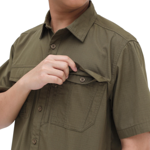 • 2 saku dada dengan flap