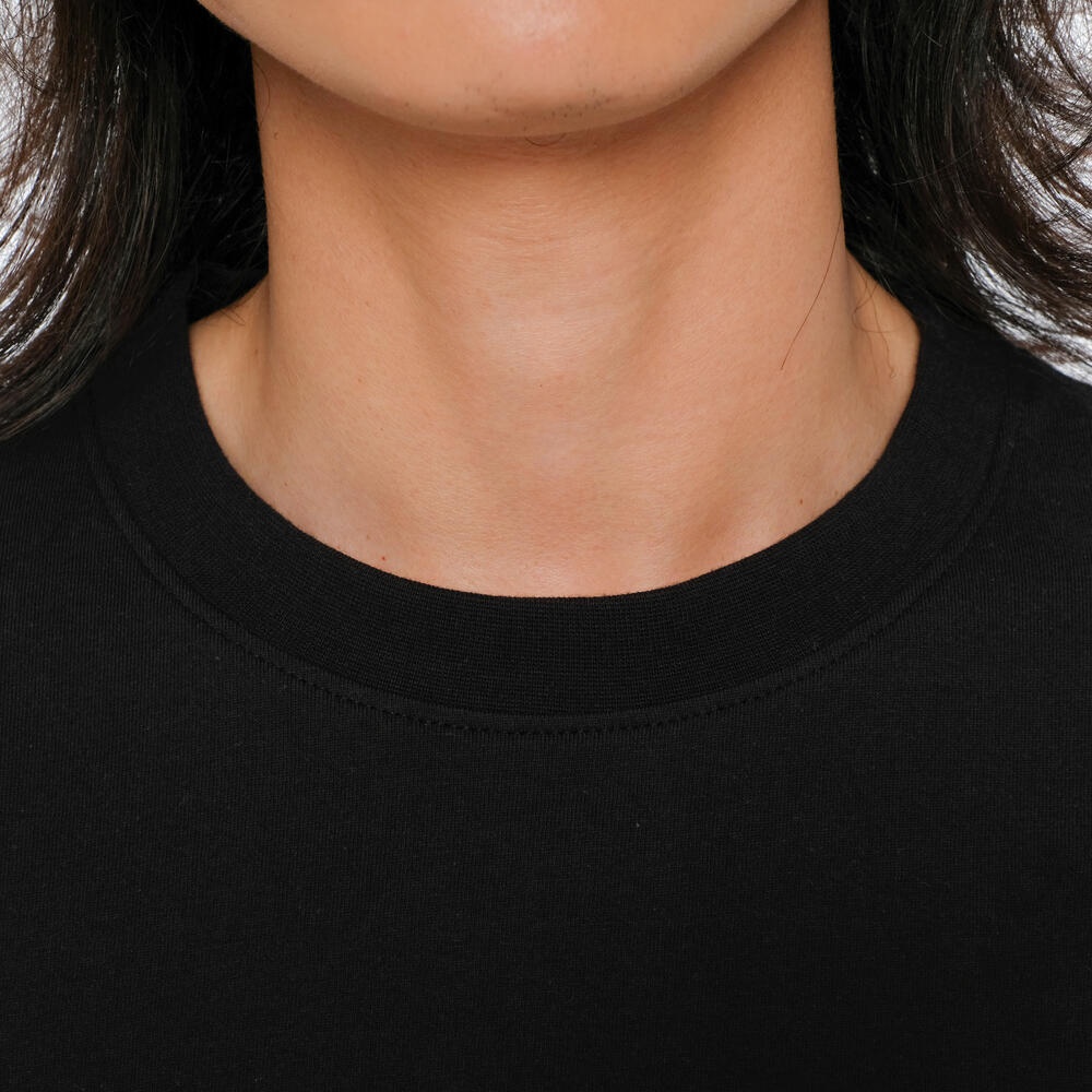 • Kerah bulat dengan rib