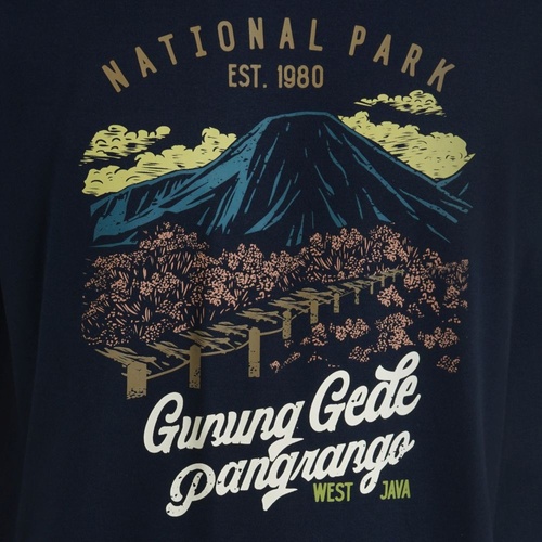 Temukan dan kenali lebih lagi berbagai taman nasional di Indonesia dengan kaos lengan pendek edisi spesial Taman Nasional. Kaos Gunung Gede Pangrango National Park ini menggambarkan pemandangan puncak Gunung Gede yang sangat terkenal di kalangan para pendaki dan pecinta alam. Berlokasi di provinsi Jawa Barat, taman nasional ini didirikan untuk melindungi dan mengkonservasi ekosistem dan flora khas nya, salah satunya yakni bunga edelweiss, seperti diilustrasikan di print grafis. Mari bersama menjaga dan melestarikan warisan alam ini. Dengan membeli kaos edisi spesial Taman Nasional, Anda akan mendapatkan pouch sebagai kemasan yang dapat digunakan kembali untuk mendukung gerakan sustainability.