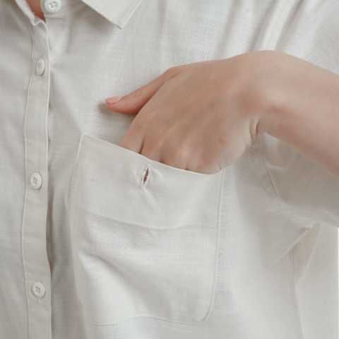 • 1 saku dada dengan kancing