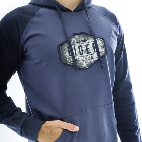 • Aplikasi sablon Logo Eiger 1989 di bagian dada