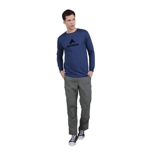• Sablon flocking dari grafis logo Eiger di bagian depan
