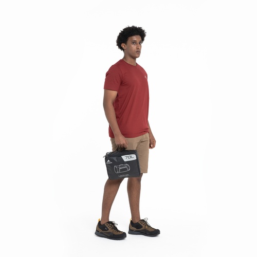 Dibuat menggunakan material berdaya tahan kuat dan awet, Layover 70 adalah tas duffel lipat yang cocok digunakan untuk menemani kegiatan traveling. Tas ini dapat dilipat menjadi ukuran yang lebih kecil sehingga menghemat tempat dan jika sedang tidak digunakan,cover-nya dapat digunakan sebagai organizer atau packing cube. Dengan kapasitas 70 liter, tas ini dapat memuat perlengkapan liburan Anda di akhir pekan. Hadir dalam tiga ukuran berbeda, yakni kapasitas 30, 50, dan 70 liter.1. Saku depan dengan gantungan kunci2. Kompartemen utama dengan bukaan besar dan dilengkapi ritsleting yang dapat dikunci3. Lubang eyelet untuk tempat kunci gembok tas4. Pita kait5. Saku beritsleting di bagian dalam untuk menyimpan barang bawaan yang lebih kecil6. Dapat dilipat menjadi ukuran lebih kecil dan dimasukkan ke dalam cover-nya, jika sedang tidak digunakan wadah ini dapat dijadikan sebagai organizer tambahan atau packing cube7. Tali gendong yang dapat disembunyikan8. Menggunakan bahan berdaya tahan kuat