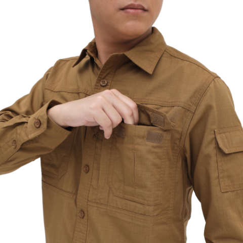 • 2 saku dada dengan flap dan 1 saku pulpen