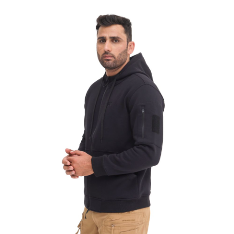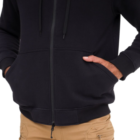 • Ritsleting dua arah dengan chin guard (pelindung dagu) untuk kenyamanan saat jaket dikancingkan penuh sampai leher