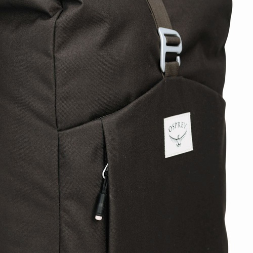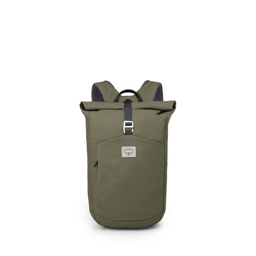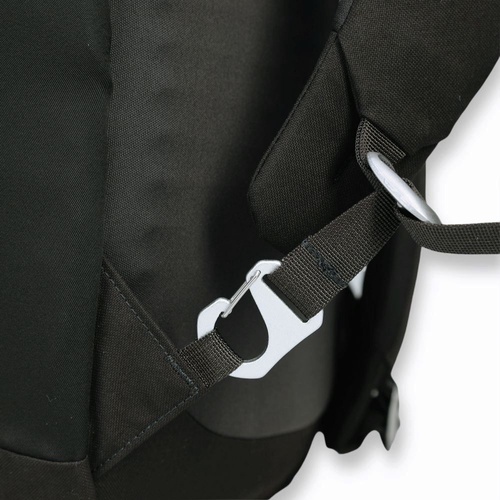 • Bukaan kompartemen utama model roll top dengan penutup webbing dan gesper aluminium