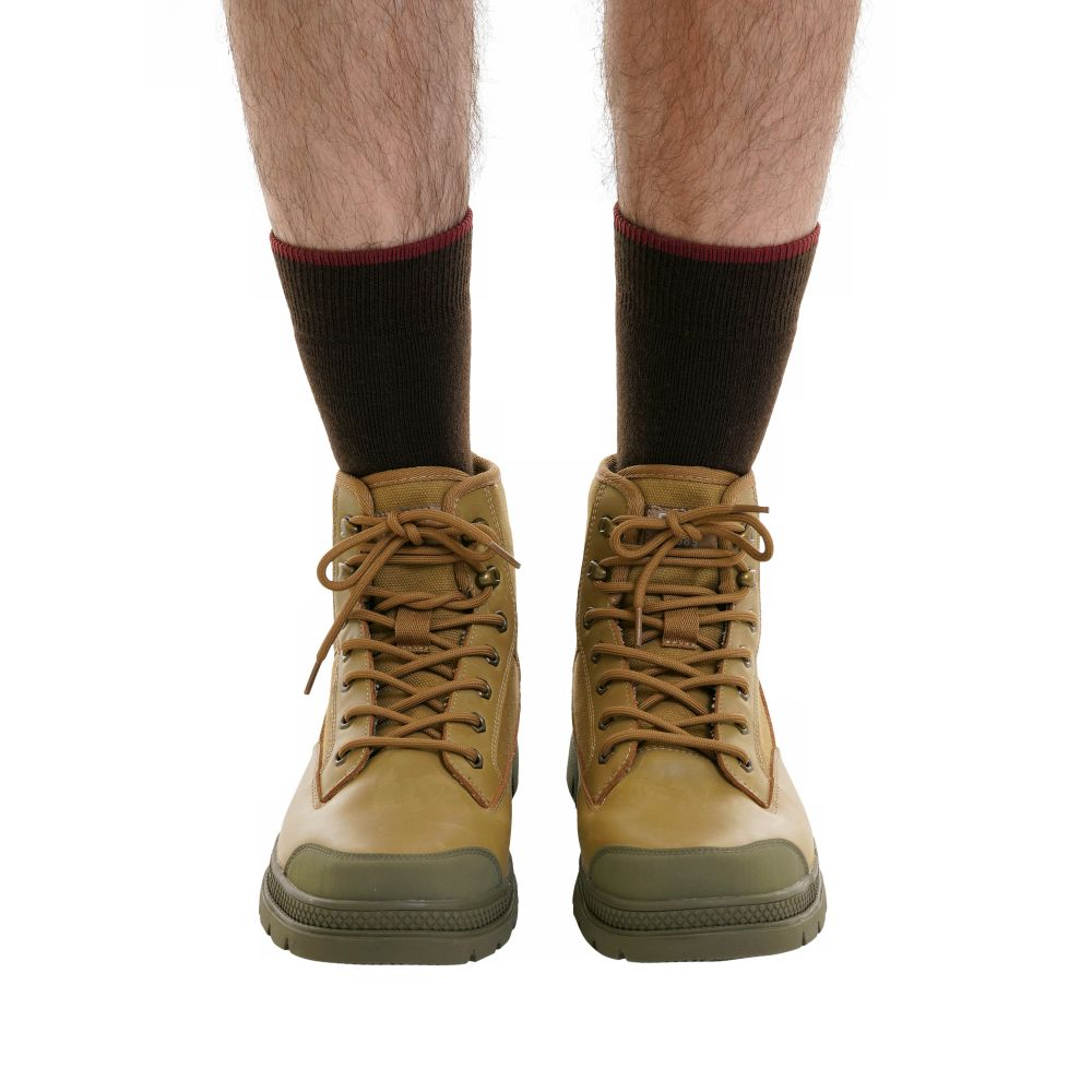 • Pada bagian atas sepatu terbuat dari material kulit nubuck dengan perpaduan kanvas anti air yang memiliki daya tahan kuat
