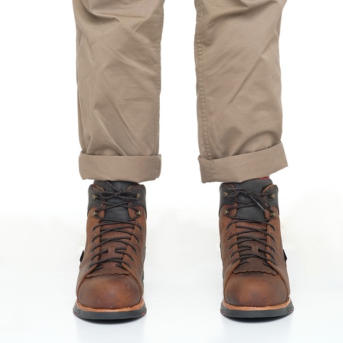 These full-grain leather boots for men have a tri density rubber outsole that's oil-resistant and slip-resistant. The outsole has a shallow lug depth that's perfect for dusty environments. These boots have a cement construction, making them light and flexible when bending or squatting.