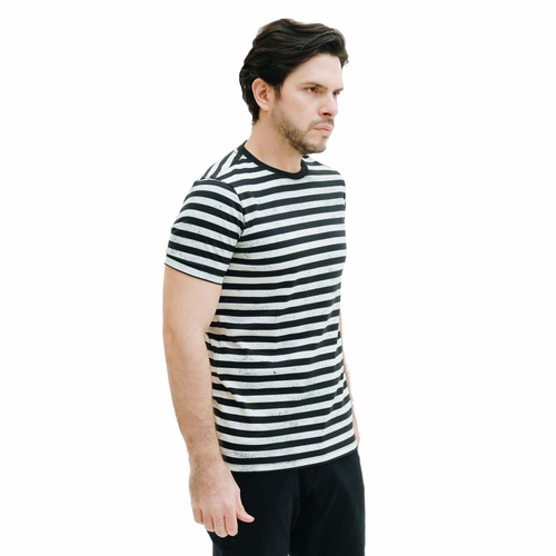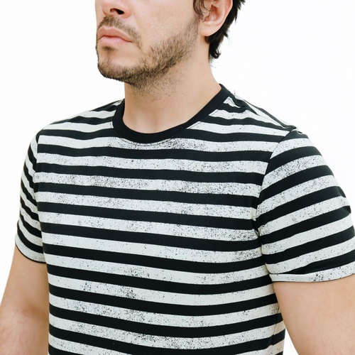 • Kerah corong • Lengan pendek • Corak garis-garis • Terbuat dari bahan katun combed 24's