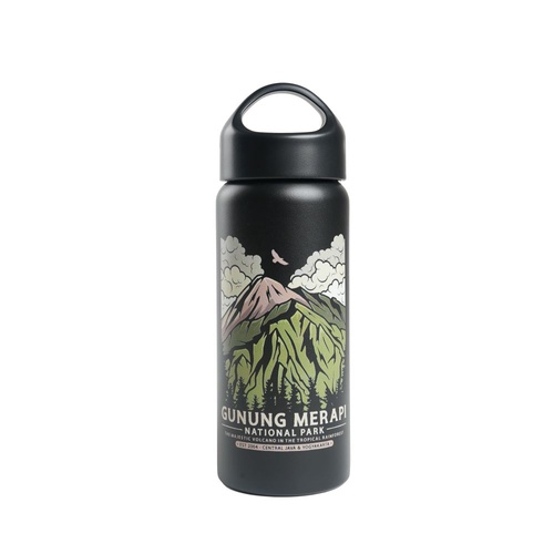 Temukan dan kenali lebih lagi berbagai taman nasional di Indonesia dengan botol minum edisi spesial Taman Nasional. Botol minum ini menunjukkan kemegahan salah satu gunung berapi aktif di Indonesia, yakni Gunung Merapi. Taman nasional di area DIY Jogjakarta dan Jawa Tengah ini menjadi habitat alami dari elang Jawa yang siluetnya diilustrasikan pada grafisnya. Gunakan kembali botol minum stainless ini dan kurangi penggunaan botol plastik sekali pakai untuk mendukung gerakan sustainability. Mari bersama menjaga dan melestarikan warisan alam ini.
