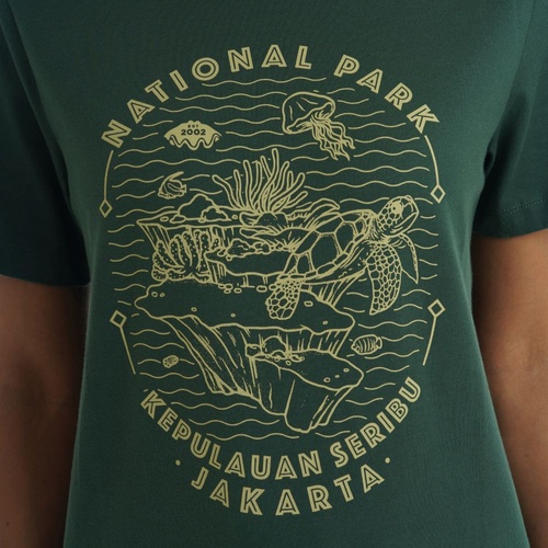 Jelajahi keindahan taman laut Indonesia lewat kaus lengan pendek pria edisi spesial Taman Nasional dari EIGER 1989. Terinspirasi dari pesona Taman Nasional Kepulauan Seribu, Jakarta, kaus ini menampilkan ilustrasi penyu sisik yang hidup di ekosistem bawah laut yang kaya akan terumbu karang dan biota laut lainnya. Tak hanya memperlihatkan kekayaan alam Nusantara, kaus ini juga mengajakmu untuk ikut melestarikannya. Dilengkapi dengan pouch serut yang bisa digunakan kembali, pembelian kaus ini adalah langkah kecil yang berarti untuk mendukung gerakan sustainability.