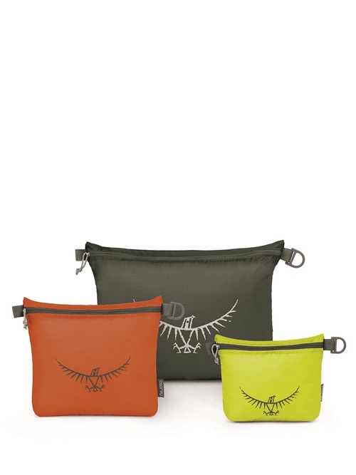 Filosofi kami saat bepergian cukup sederhana : buat semuanya lebih mudah untuk diorganisir dan dikemas saat bepergian agar Anda dapat menghabiskan waktu lebih banyak untuk menikmati perjalanan Anda. Tak peduli tujuan berlibur ataupun cara Anda mengemas perlengkapan, Osprey menawarkan solusi perjalanan yang dibutuhkan untuk semua orang. Anda butuh sesuatu untuk dibawa ke pantai? Ultralight Zipper Sack solusinya. Apapun aktivitas, tujuan, atau gaya Anda mengemas, Osprey memiliki solusi untuk semuanya. 1 set terdiri dari 3 pouch dengan 3 ukuran yang berbeda : kecil, sedang, besar