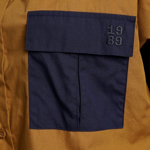 • 2 saku dada dengan penutup flap