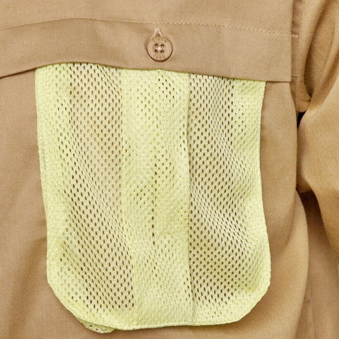 • 2 saku dada dengan kancing (1 saku dengan bahan mesh)