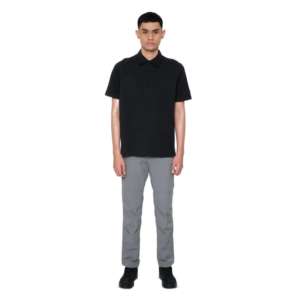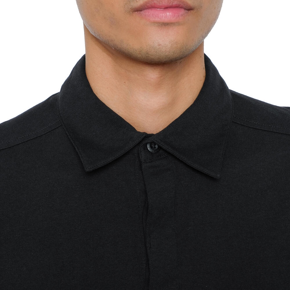 • Kerah polo dengan bukaan kancing tertutup